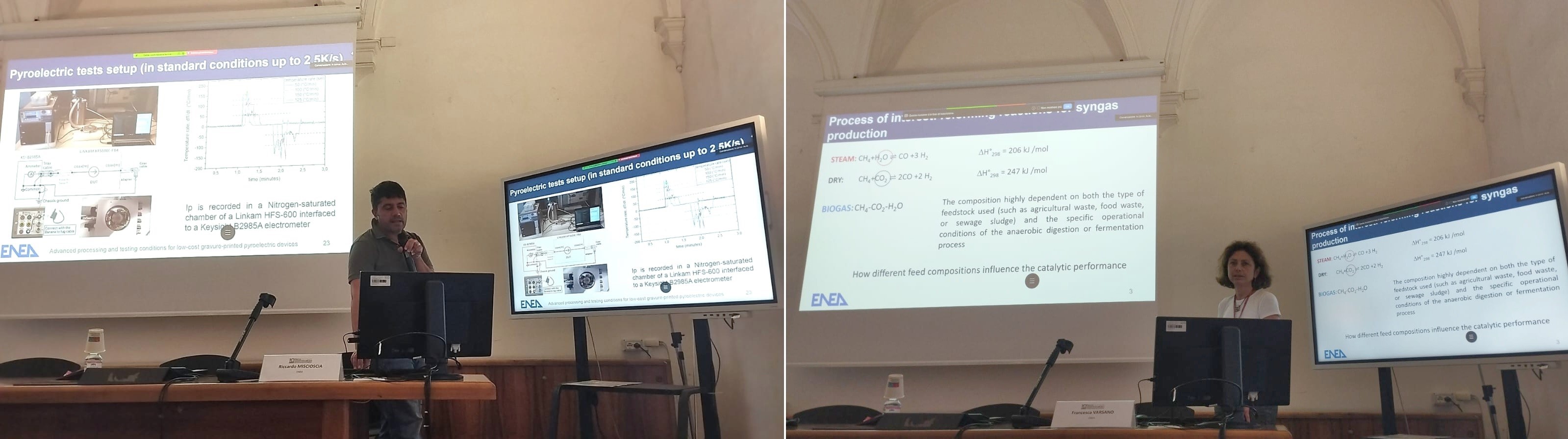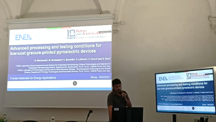 Inoltre, sono stati presentati i risultati ottenuti nello sviluppo di dispositivi per la micro-generazione di energia, basati su materiali piroelettrici ottenuti da stampa rotocalco, dispositivi che sfruttano le fluttuazioni termiche generate da flussi di calore di scarto e a bassa temperatura (Giuliano Sico e Riccardo Miscioscia, del laboratorio SSPT-TIMAS-CMS).